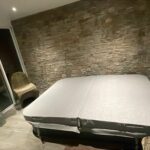 Découvrez cette réalisation; habillage d’un mur en pierre dans un spa.