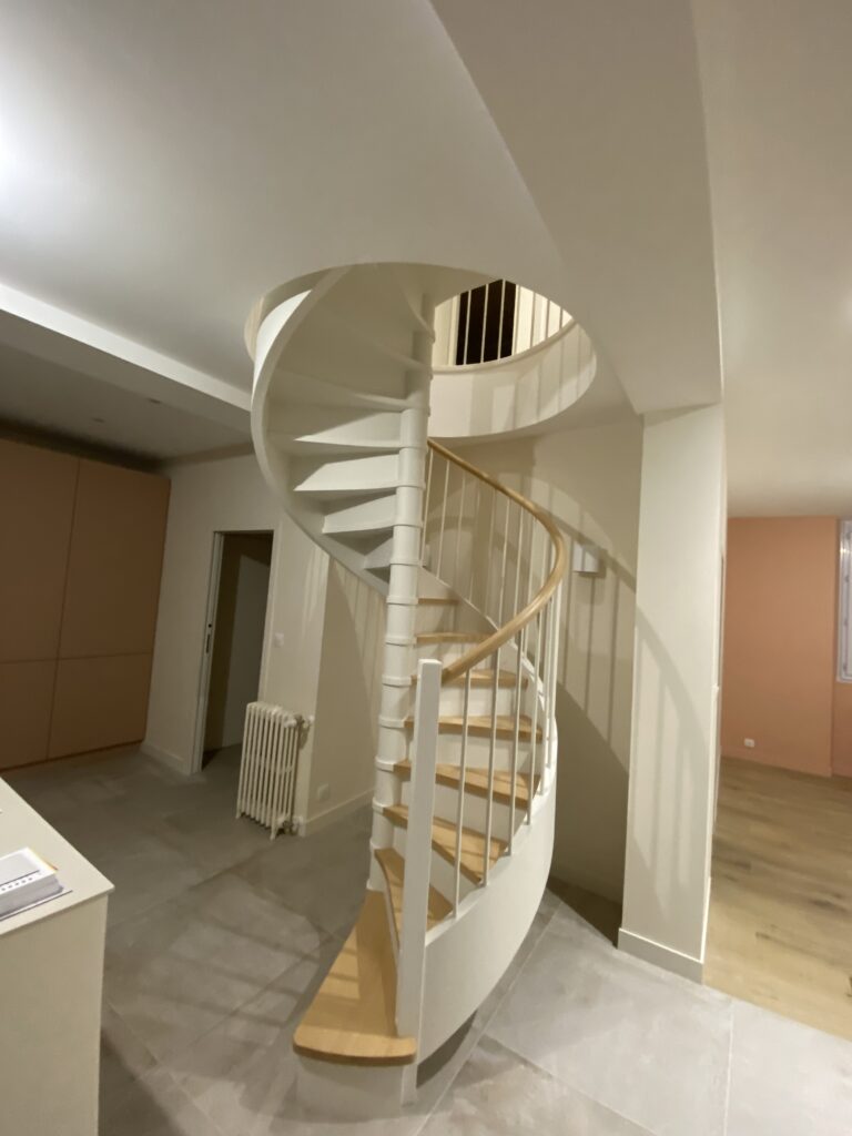 Découvrez cette réalisation; habillage d’un escalier en colimaçon avec plaques de plâtre dans une maison individuelle en rénovation à la Baule Escoublac (44).